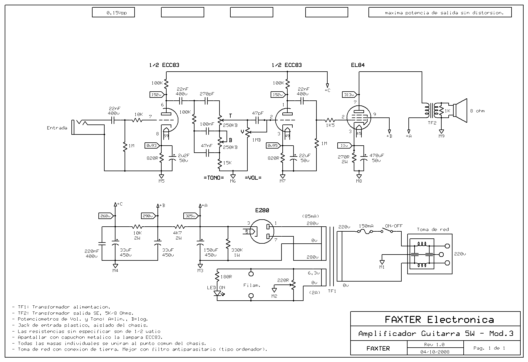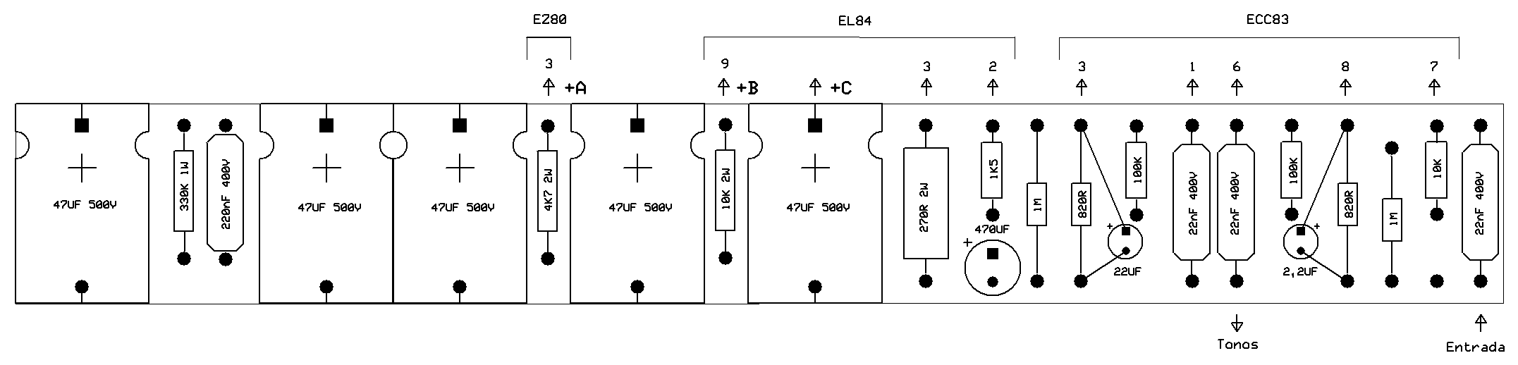 Esquema del amplificador valvular (BMP).